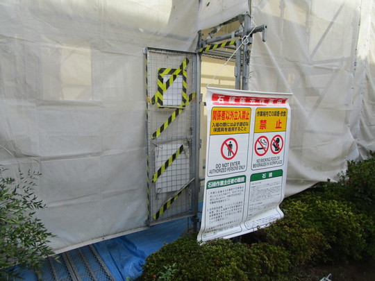 石綿含有とみなしての施工の為、法令に基づき標識の掲示を行います。