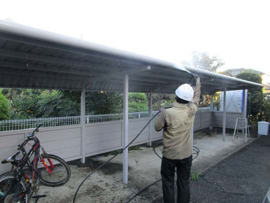 削り取る範囲を濡らして粉塵の発生を抑えます。