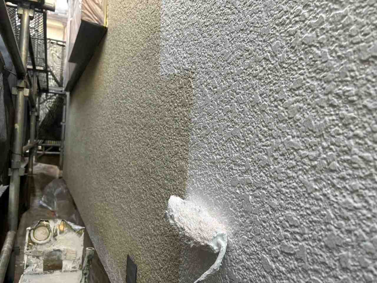 17年前の当社仕上塗料はエスケー化研の水性弾性セラミシリコン(期待耐用年数12~15年)、1液マイルドウレタン(期待耐用年数8~10年)という組み合わせでした。今回施工させて頂くにあたり塗膜を念入りに確認しましたがチャーキングは出ているものの剥離等の重大な欠陥はありませんでした。設立当初から塗料の質よりも下地処理をしっかりと行い、適切に塗装を行うという事に重点を置いていましたので今回再施工させて頂いた事で当社の施工はメーカー期待耐用年数を大幅に上回る耐久性を確保できる事を再認識しました。なお、クラック(ヒビ)は建物の問題が多いですが築35年を超えていてもほとんど発生していないので新築時からしっかりと造られているお家だという事が分かります。