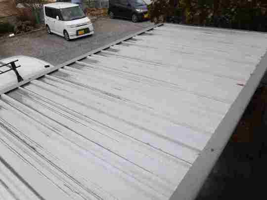 オーナー様より約20年が経過し屋根の変色が目立ってきたので当初は屋根塗装のみでご相談がありました。 点検調査を行ったところノンアスベスト屋根で経年劣化に伴い割れや欠けが多く発生する旧松下電工製(現Kmew)のレサスが使用されていることが判明しました。塗装では今後の不具合には対応できない為、カバー工法による改修をご提案いたしました。また外周すべてに足場を組むのでその他必要な箇所の補修工事も併せて施工する事になりました。