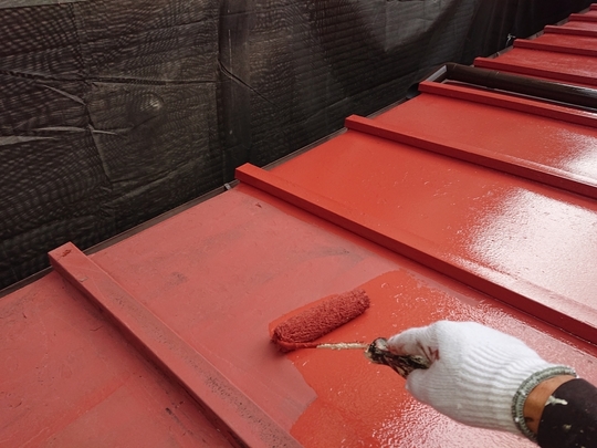 下塗り ハイポンファインプライマーⅡ 上塗りシリコンルーフⅡ(マーズレッド)
