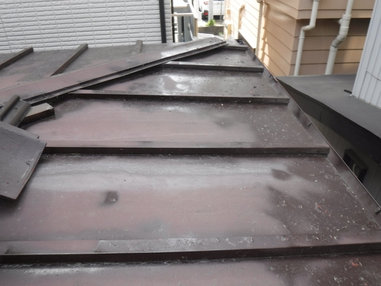 過去の塗装で生じたクラック補修痕や既存塗膜の剥れが多く見られた為、まずは下地処理を徹底的に実施しました。特に施主様が心配されていた屋根は過去の塗り重ねによる古い塗膜が何層もありその処理が一番の難所でした。工程ごとに浮いてくる不良塗膜を念入りに削りながら錆止め2回、上塗り3回と施工し、きれいで長持ちする仕上がりになりました。完了時の仕上がりにや細部までこだわった施工内容に大変満足して頂き私たちも大変うれしく思います。