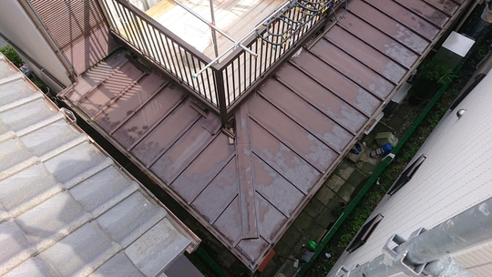 もともとご主人様がDIYでいろいろと自宅修理を行っていたそうですが、屋根の剥れ等劣化の進行が気になっているタイミングで当社が隣家で工事を始めて、作業内容と仕上がりを見てお声を掛けて頂きました。定期的にお手入れされている建物でしたが屋根や外壁に塗膜剥離が多く、その処理を念入りに行う施工内容をご提案いたしました。