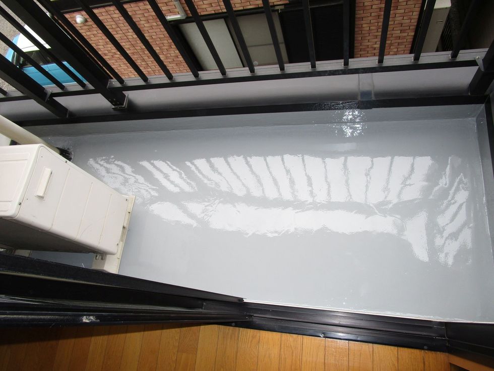 既存のFRP防水をすべて撤去し、下地状況における影響も考慮したうえで調整を行い、ウレタン塗膜防水を施工することで、雨漏りの改善を図りました。