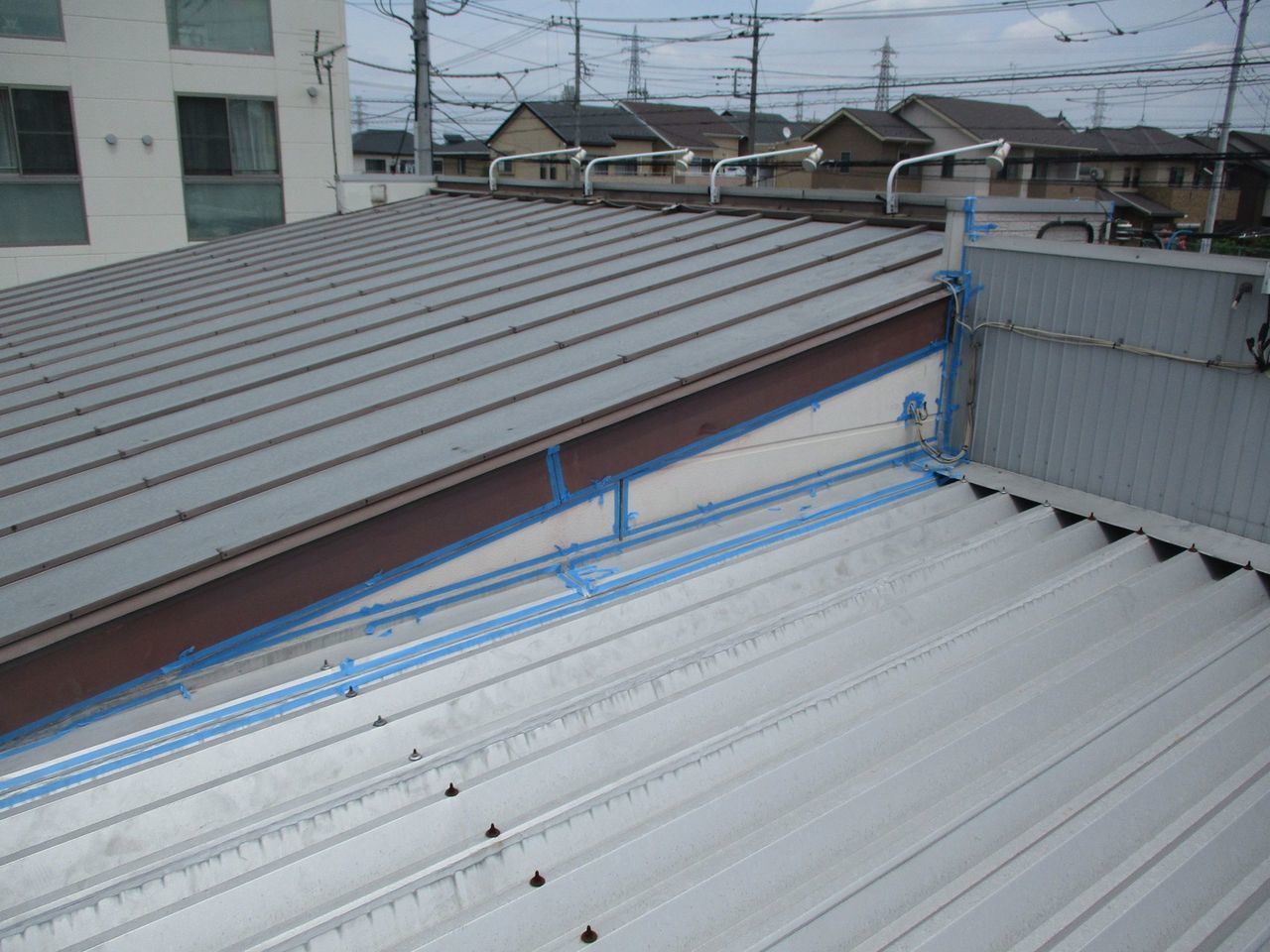 今後屋根塗装を予定されている場合は塗装適性のある、「変成シリコン」での施工を推奨しておりますが、今回は今後塗装のご予定が無いとの事でしたので、屋外での紫外線や対候性に優れた「シリコンコーキング」にて補修実施しました。