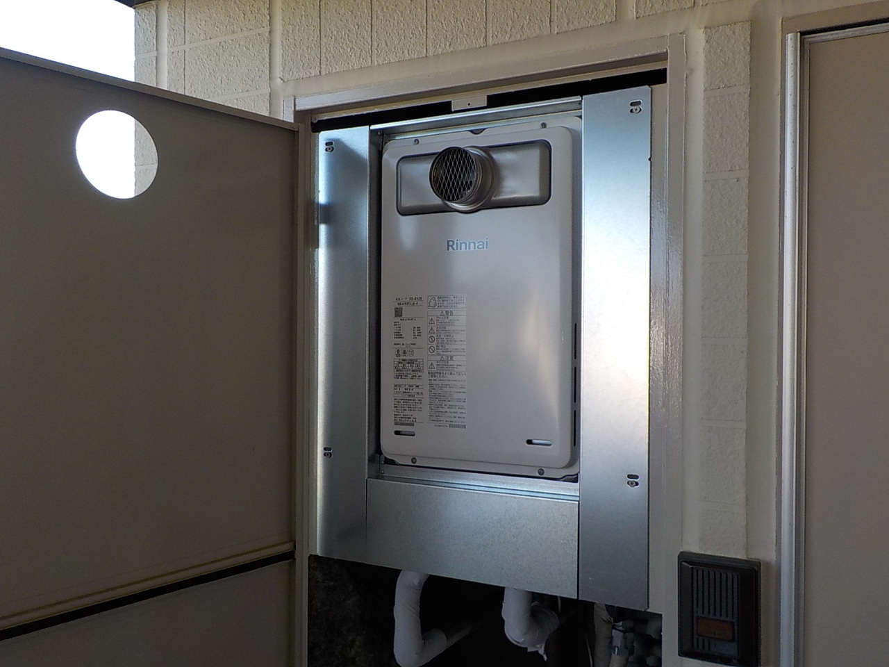 確認したところ、設置されていた給湯器は2010年製で、設置から15年以上が経過した更新時期の機器でした。
